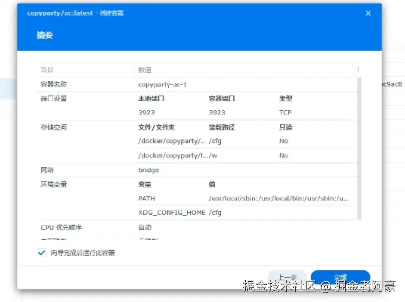 回到docker里面双击下载好的copyparty点击运行