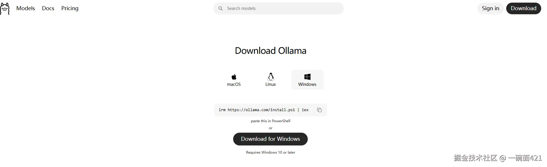 - 前往 https://ollama.com/download/windows 官网下载ollama