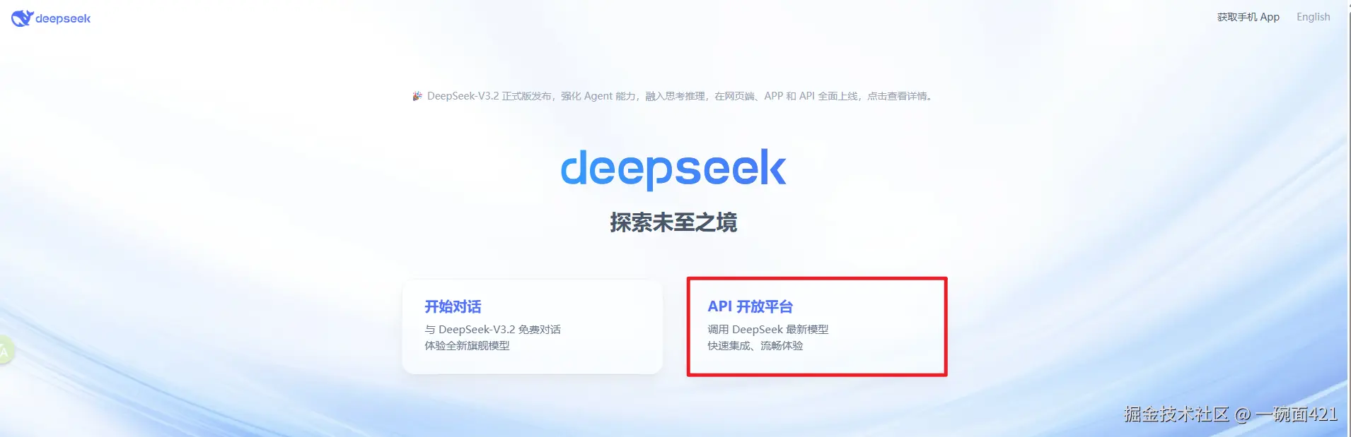 - 打开DeepSeek官网 www.deepseek.com/ ,找到API开放平台,点击后需要进行注册登录