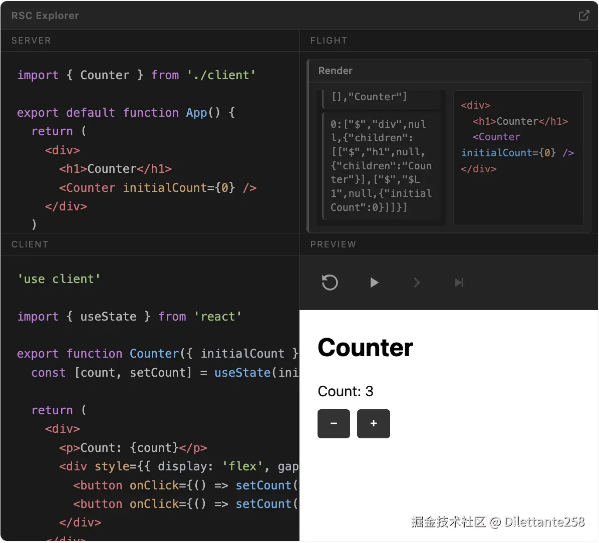 如果你想系统理解"异步组件、客户端组件、Server Action、路由更新、错误处理、二进制数据"的细节,强烈建议看 Dan Abramov 的文章和 RSC Explorer: