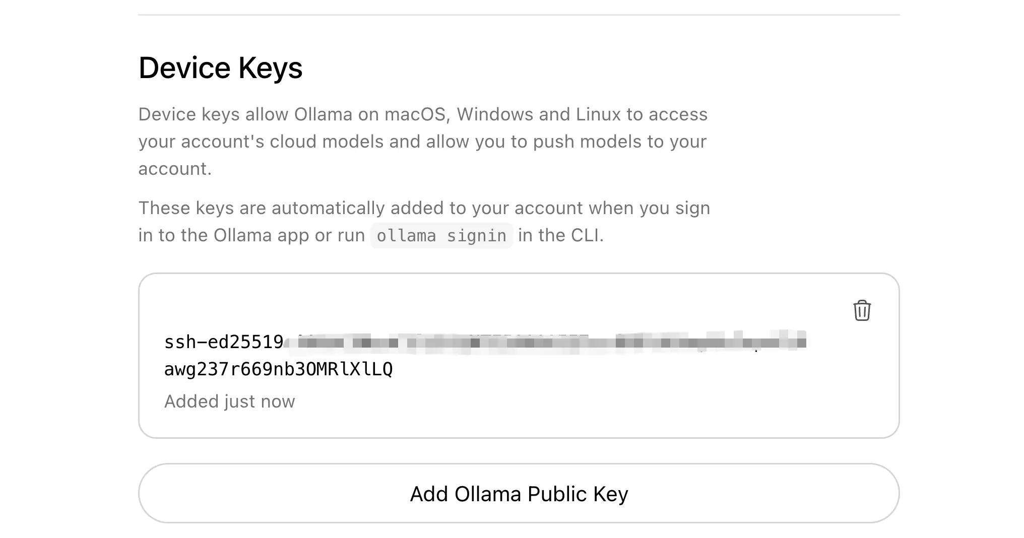 先去ollama.com/settings/ke... key,再设置环境变量启动:
