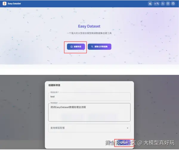- 创建项目: 首先,在 EasyDataset 中创建一个新项目,笔者将其命名为