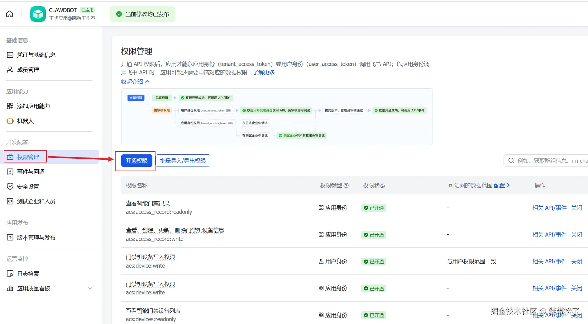 选择开通权限: