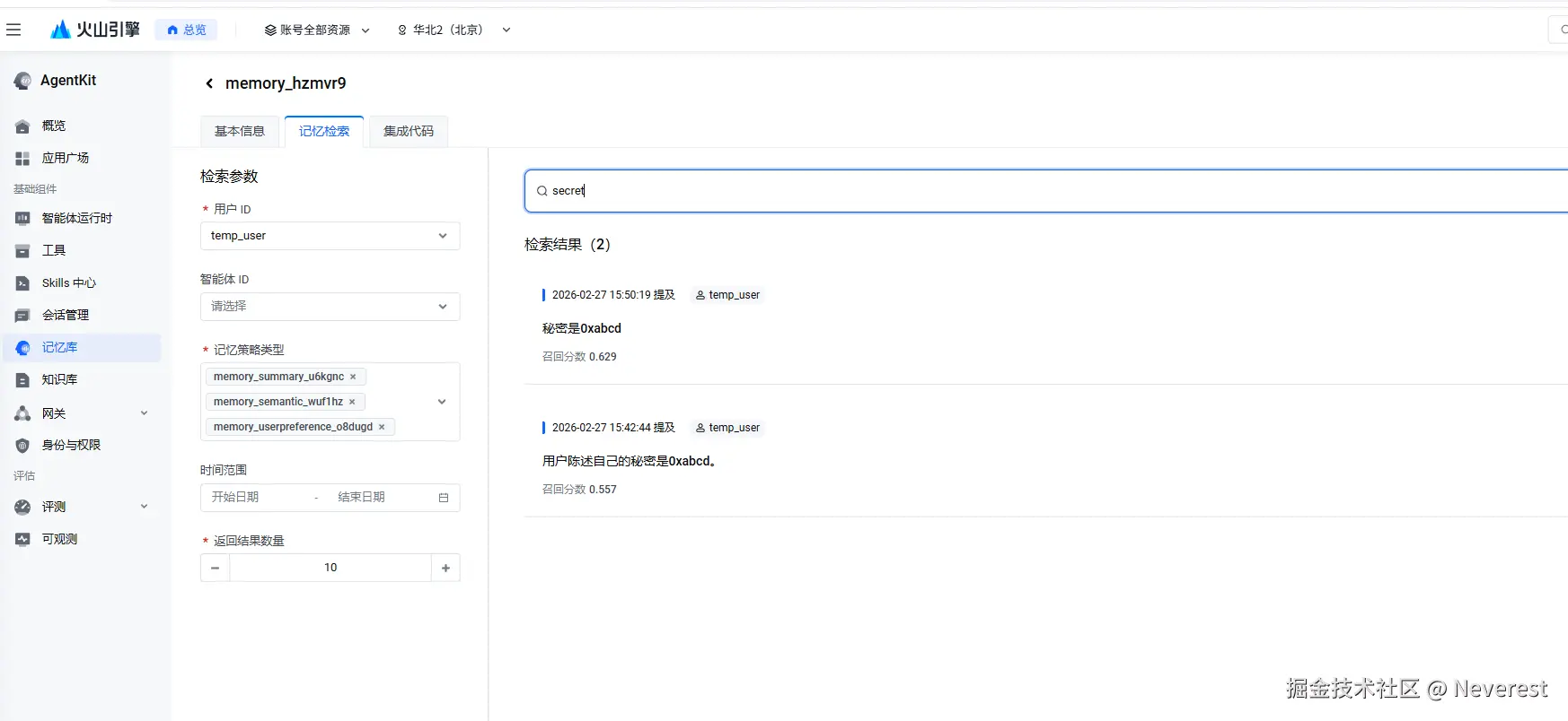 后续有空作者会尝试对火山的记忆库进行压测,同时测试火山自研的Viking记忆库。