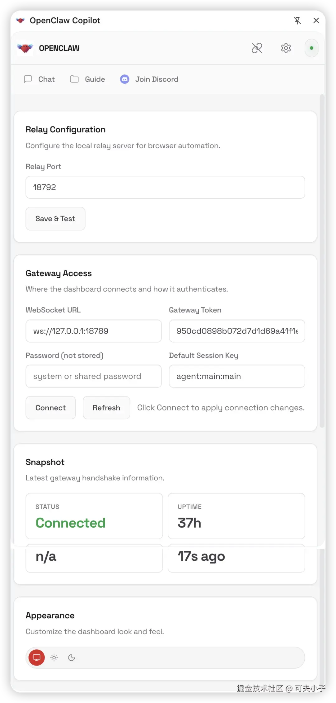 不知道你有没有留意,当你调用OpenClaw的浏览器插件OpenClaw copilot插件时,会有两个服务端口需要配置,大致如下: