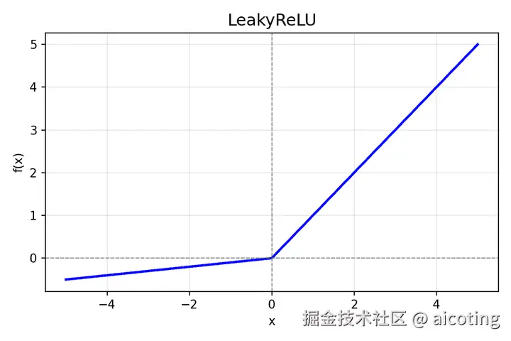 - Leaky ReLU: 对负区间引入一个小斜率,避免神经元死亡