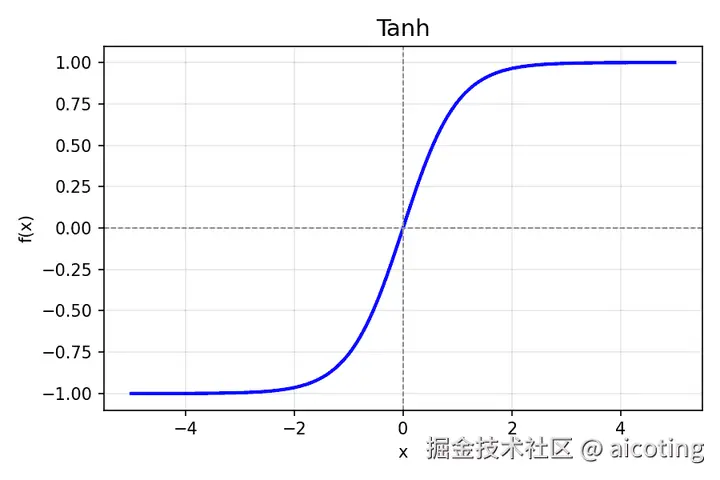 - 优点:输出在 (−1,1),比 sigmoid 居中,对梯度更友好