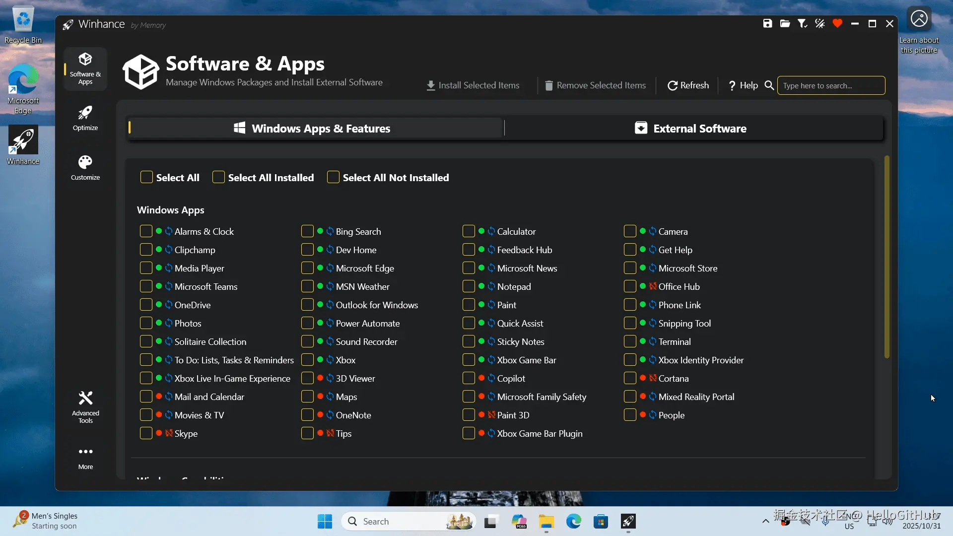 4、Winhance:开箱即用的 Windows 系统优化工具。这是一款基于 C# 开发的 Windows 10/11 一站式系统优化工具,无需重装系统即可定制、精简系统。它集成了软件管理、系统优化、界面定制等功能,支持一键卸载预装应用、性能调优和界面美化,适用于重装系统或新机初始化。来自 @只是肚子太寂寞 的分享