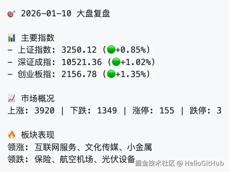 31、daily_stock_analysis:基于 LLM 的智能股票分析系统。这是一个由 LLM 驱动的智能股票分析工具,支持 A 股、港股和美股的每日自动分析与推送。它通过 AkShare、Tushare、YFinance 等数据源获取实时行情,并借助 DeepSeek 等大模型 API 服务,对自选股票进行多维度分析(技术面、筹码分布、舆情),生成决策仪表盘,支持 GitHub Actions 定时执行(无需服务器)或 Docker 一键部署。