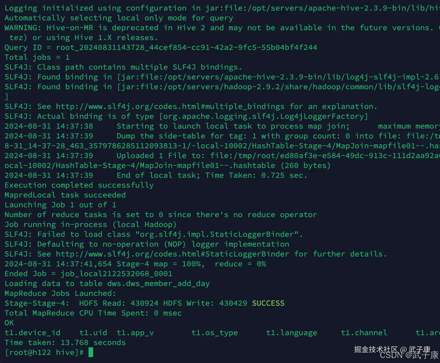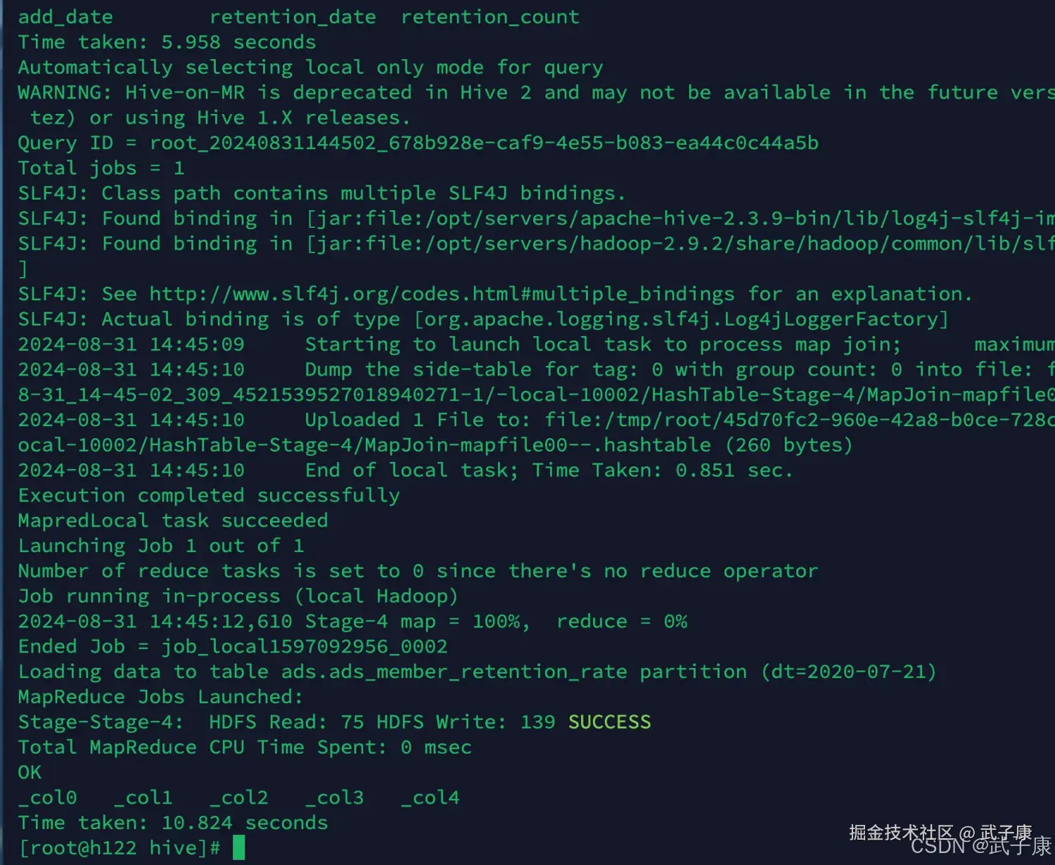 - 结论: 当前内容的价值在于"跑通链路",重点不是炫复杂建模,而是验证 Hive 分层、脚本执行、导出落库与广告指标口径是否闭环。