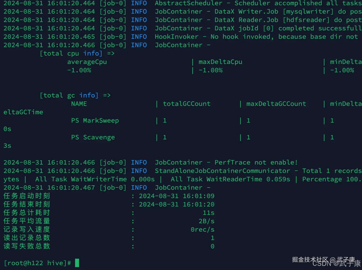 | DataX 执行成功但 MySQL 无数据 | 源路径无文件、日期参数不一致,或目标表映射配置错误 | 查 DataX 日志、核对 HDFS 文件与导出日期 | 统一 Hive 导出日期、HDFS 路径、DataX job 配置与目标表字段 |