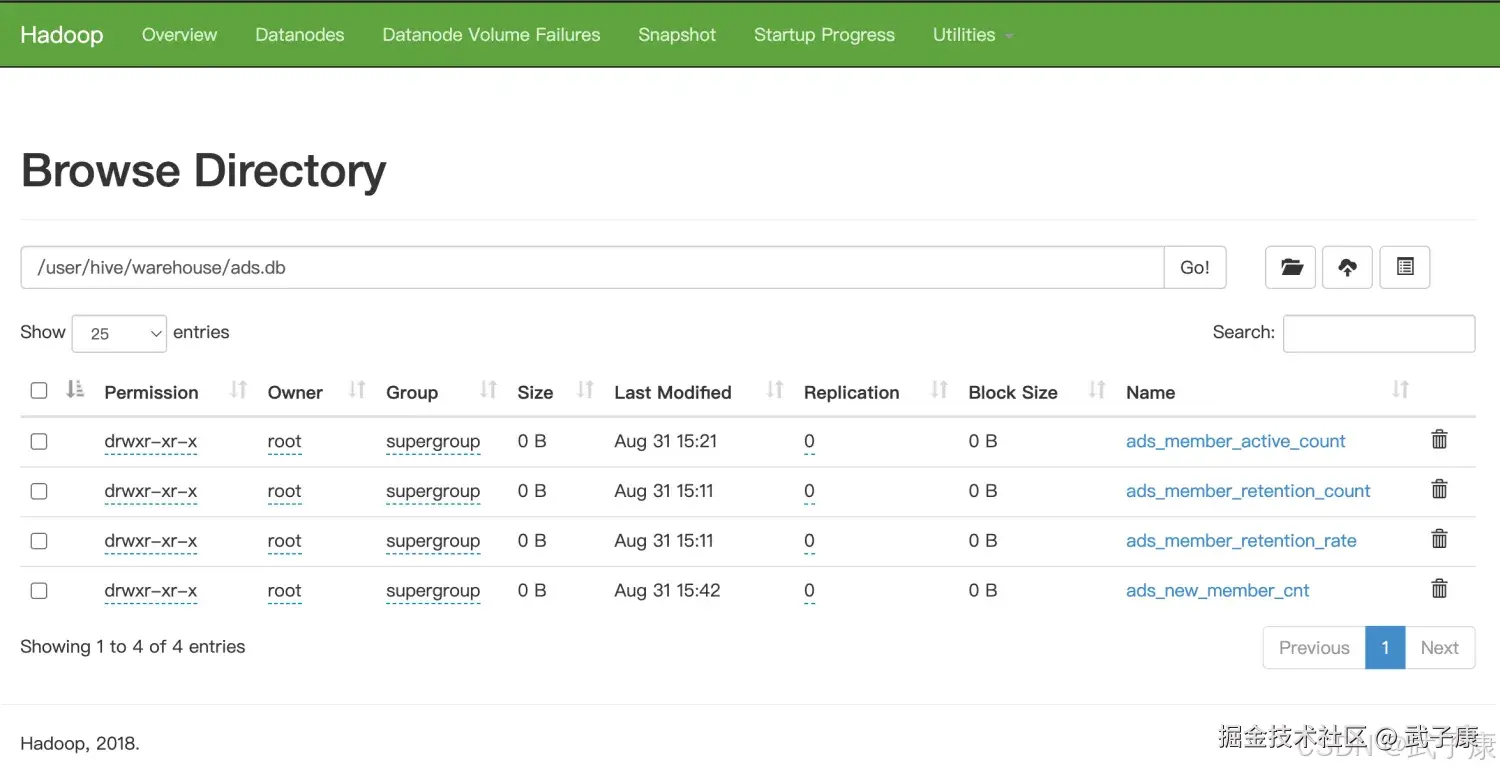 HDFS 现在数据有了,在我们的HDFS上,可以看到: