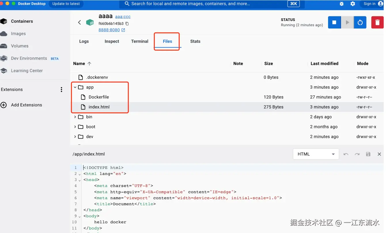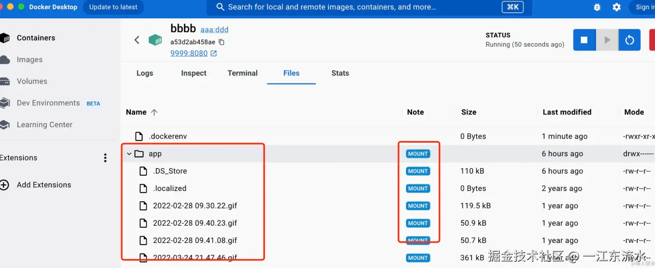 运行起来后,我们在 files 里看看 /app 下是啥内容: