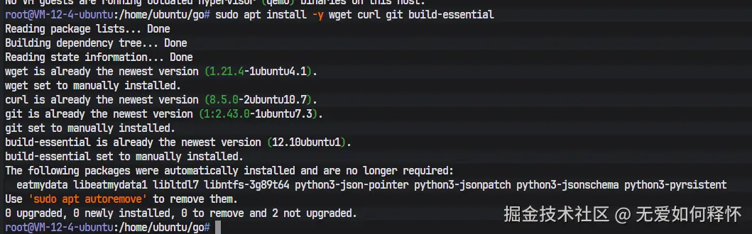 wget/curl:用于通过 HTTP/HTTPS 协议从远程服务器检索文件。git:分布式版本控制系统,用于代码管理。build-essential:Ubuntu 的元包,包含了gcc、g++、make、dpkg-dev等编译核心组件。