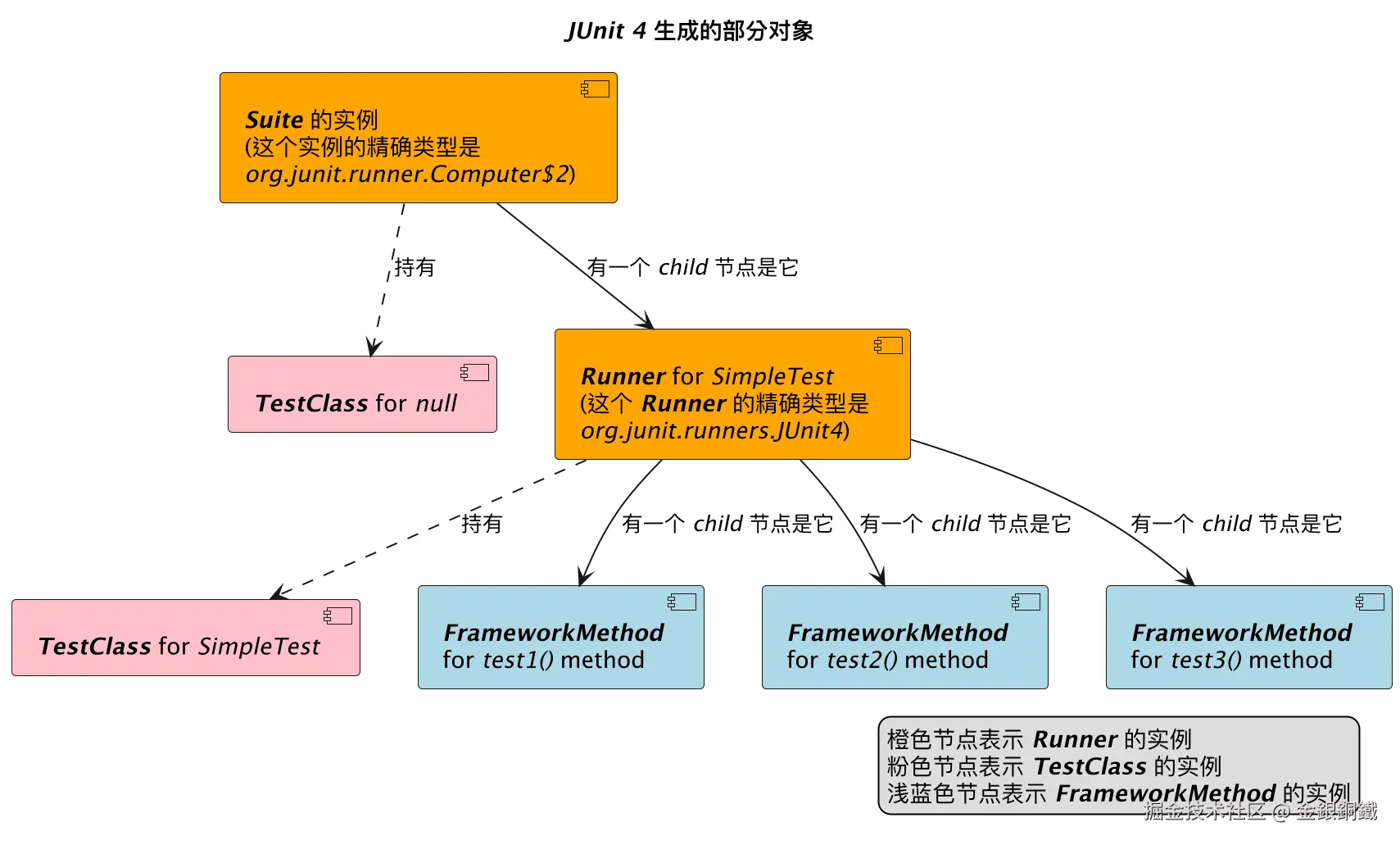 [<b><i>Runner</i></b> for <i>SimpleTest</i>\n(这个 <b><i>Runner</i></b> 的精确类型是\n<i>org.junit.runners.JUnit4</i>)] as r #orange