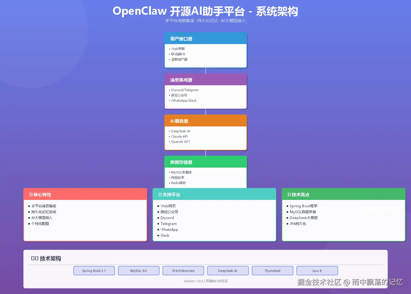 上图展示了OpenClaw完整的五层架构设计,从消息接入到数据存储,每一层都精心设计,确保系统的高可用性和可扩展性。