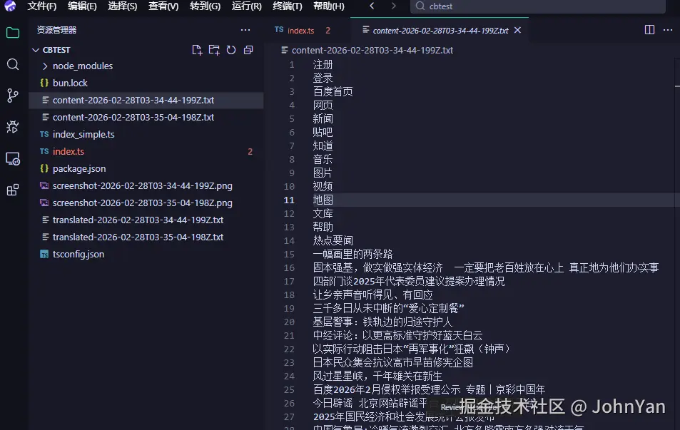 程序确实顺利的编写并且正常运行了。网页也能够正常访问、截屏和内容获取。但由于系统集成的问题,这个代码无法正常访问翻译API(代码中的设置)。但好像它还是想办法利用LLM模型自身的能力执行了翻译的过程。