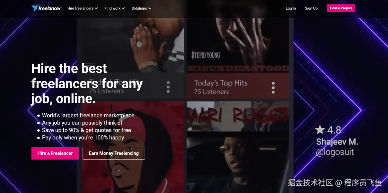 平台特点:适合想要接触国际项目、锻炼竞标和提案能力的程序员兼职,需要学会通过出色的作品集来吸引客户,避免陷入单纯的价格比拼。