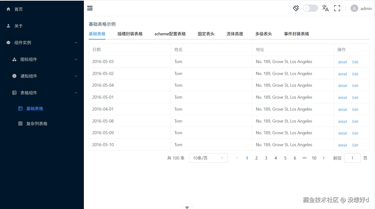 说明:el-table的二次封装,使用scheme配置的方式设置表格字段。