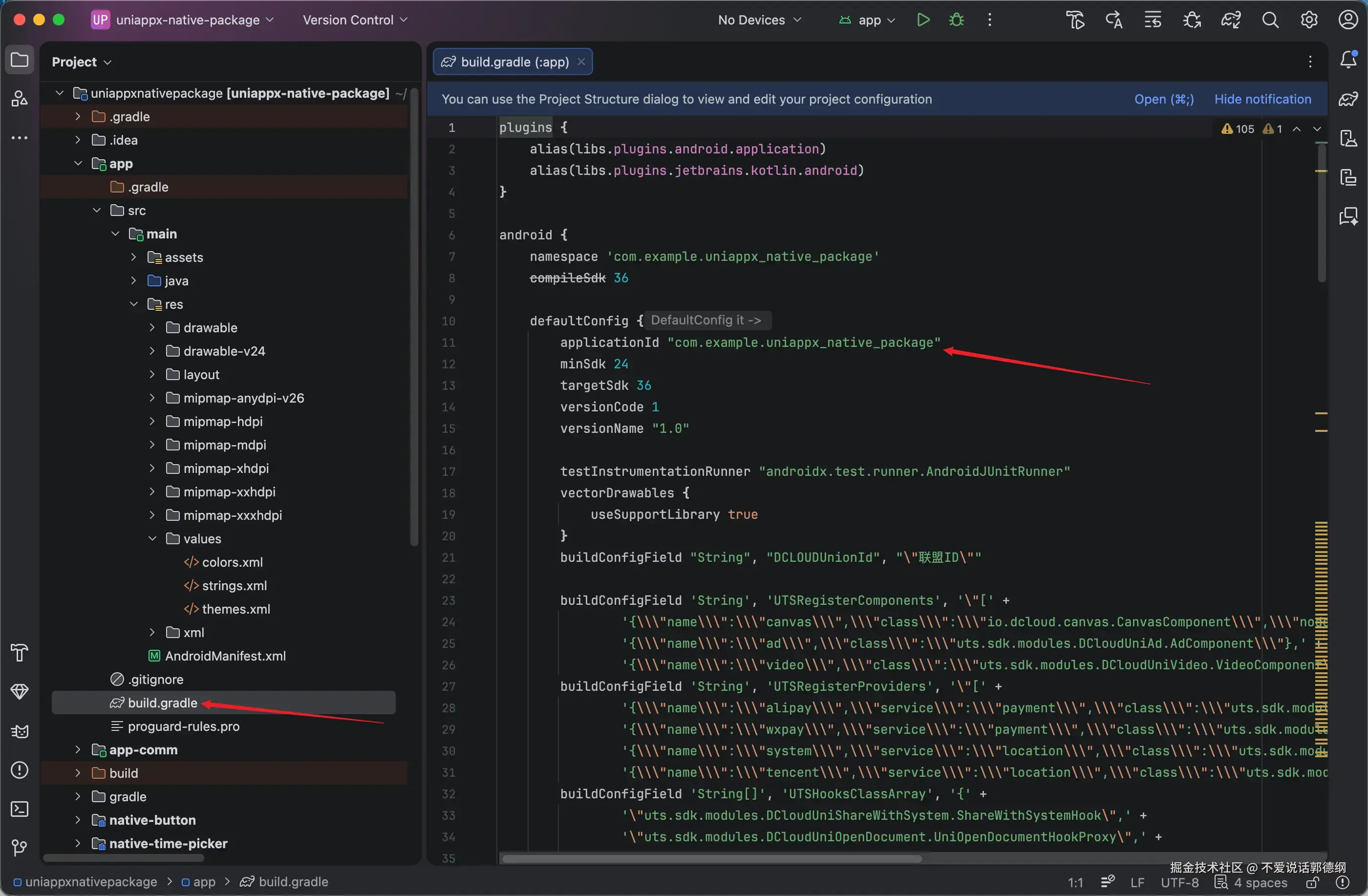 - 找到 defaultConfig 节点下的 applicationId "com.xxxx.xxxx"。