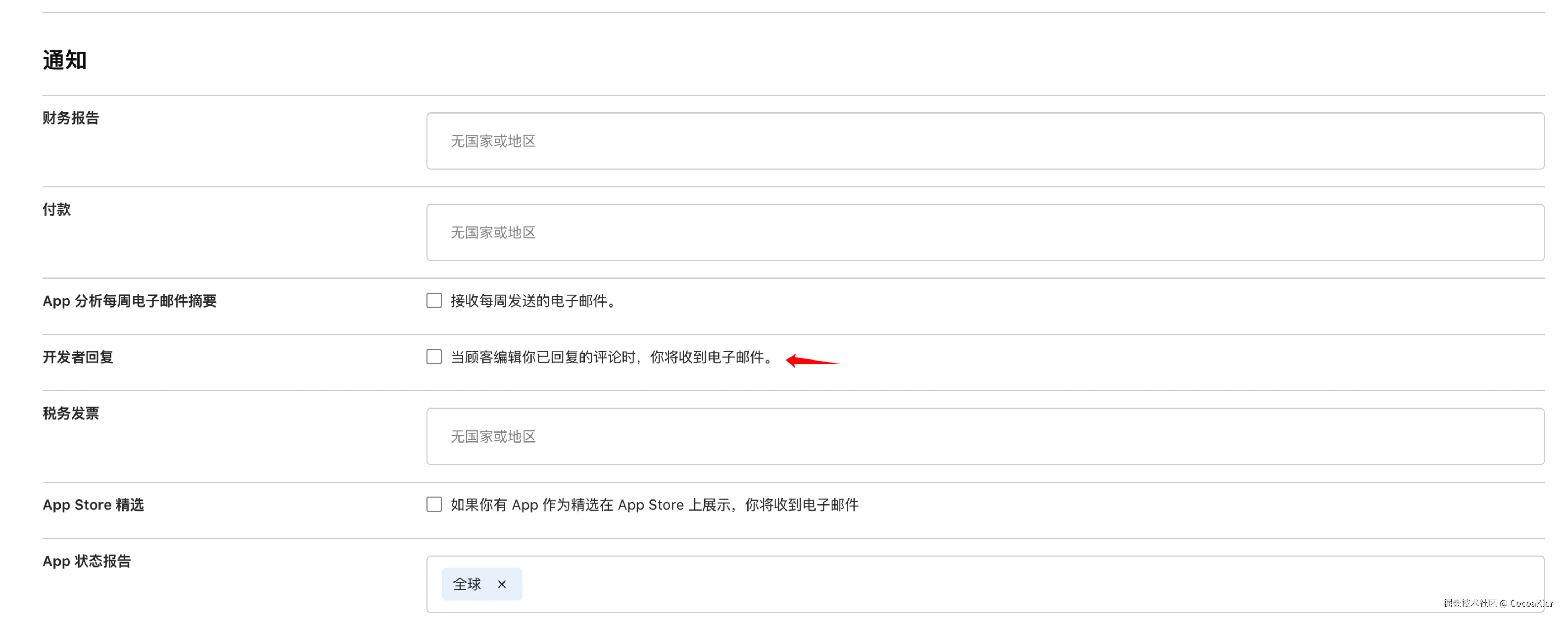 Tips:"收到评分评论后邮件通知开发者",这个功能在旧版 iTunes Connect 中曾经存在,但在新版 App Store Connect 中已被移除。猜测苹果可能不想开发者过度关注单条评分评论。