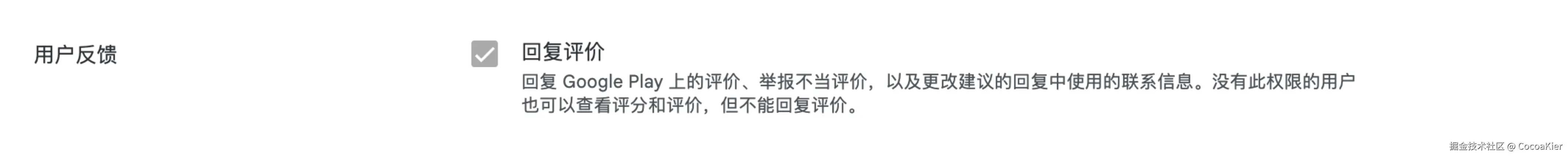 Google开发者后台 play.google.com/console/dev...,需要 用户反馈 权限。