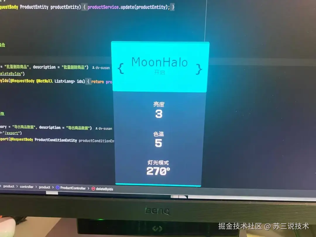 夜里赶工我会开Moonhalo智慧光环(显示器背后的环境光环),在屏幕后方打出柔和的偏置光,降低屏幕和背景的亮度反差,眼睛没那么累。