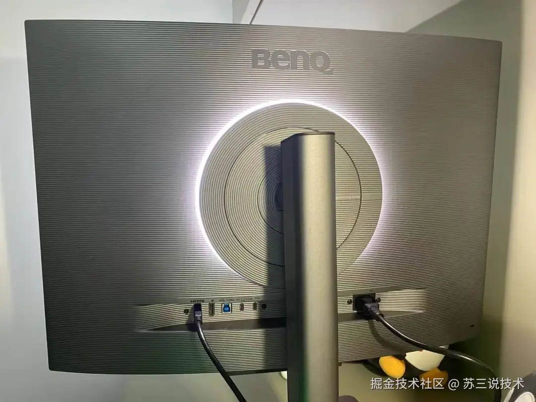 常用的HDMI/DP/USB-C都在,外接存储和键鼠直接挂显示器后面的USB口,桌面线路更干净。
