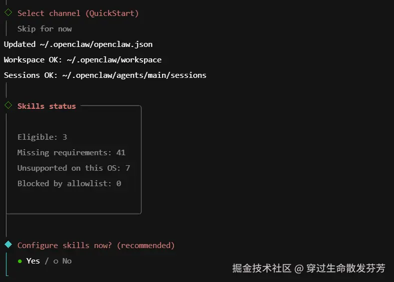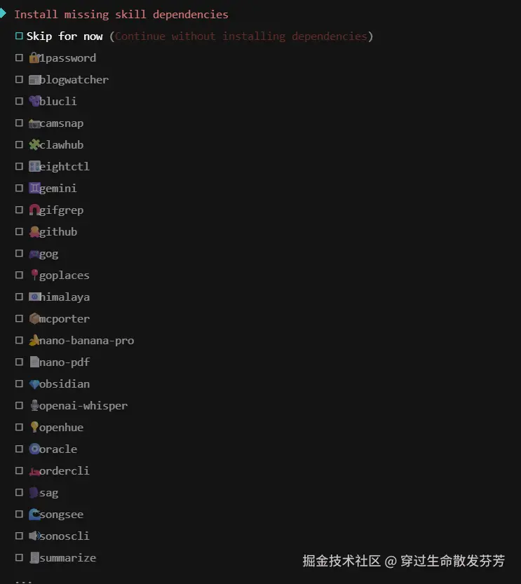 8、配置skill,可以按照自己的需求自行选择。