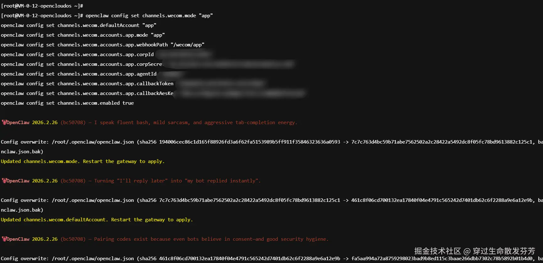 openclaw config set channels.wecom.accounts.app.callbackToken "你设置的应用的token"