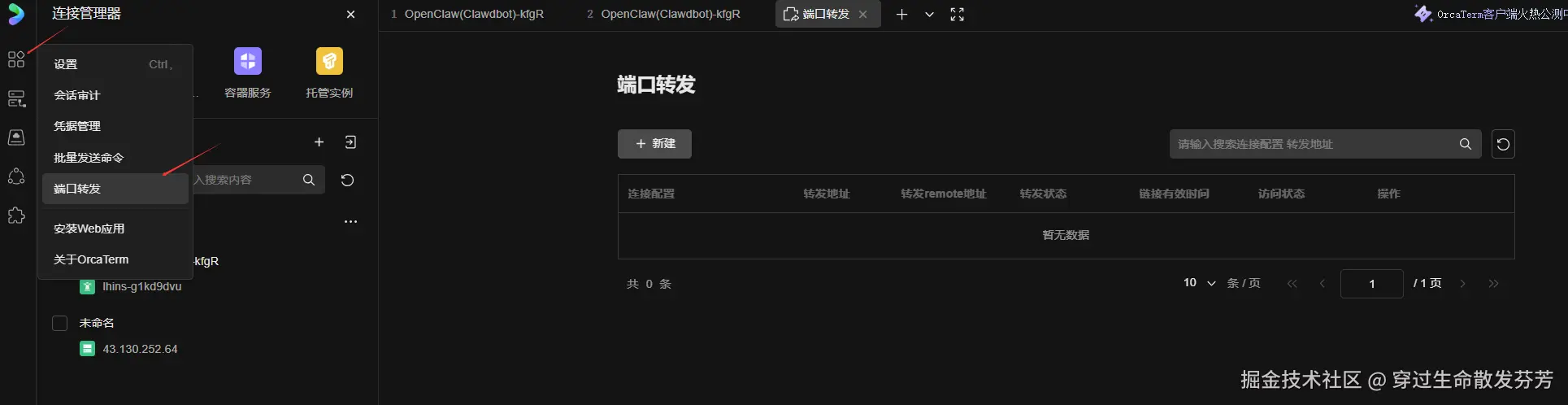 3、左侧功能菜单中找到并点击端口转发 ,在端口转发页内单击新建按钮。