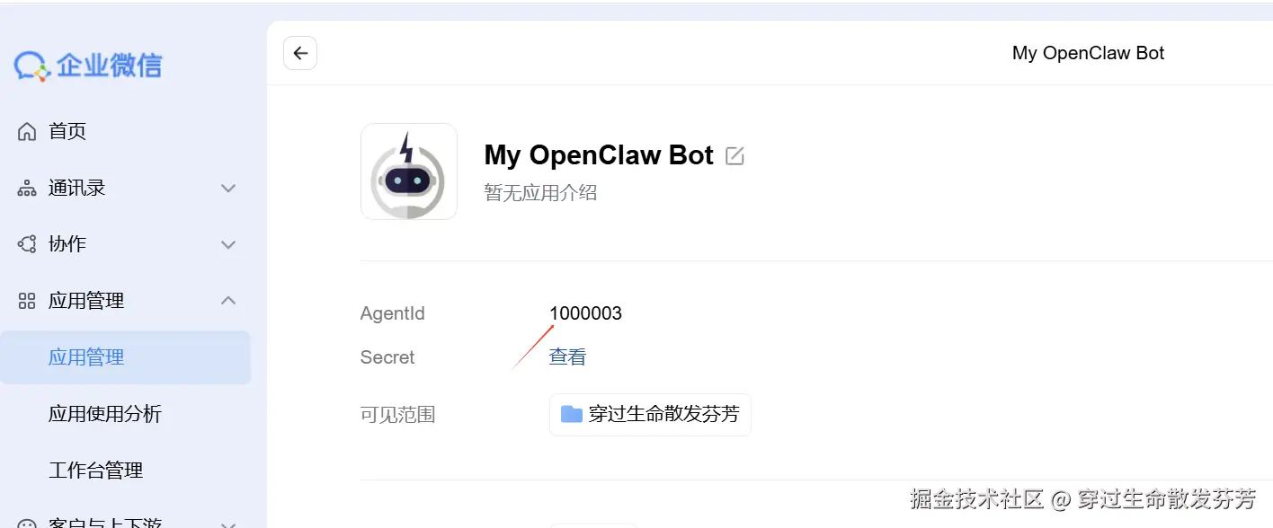 2、查找企业微信应用所需配置信息。