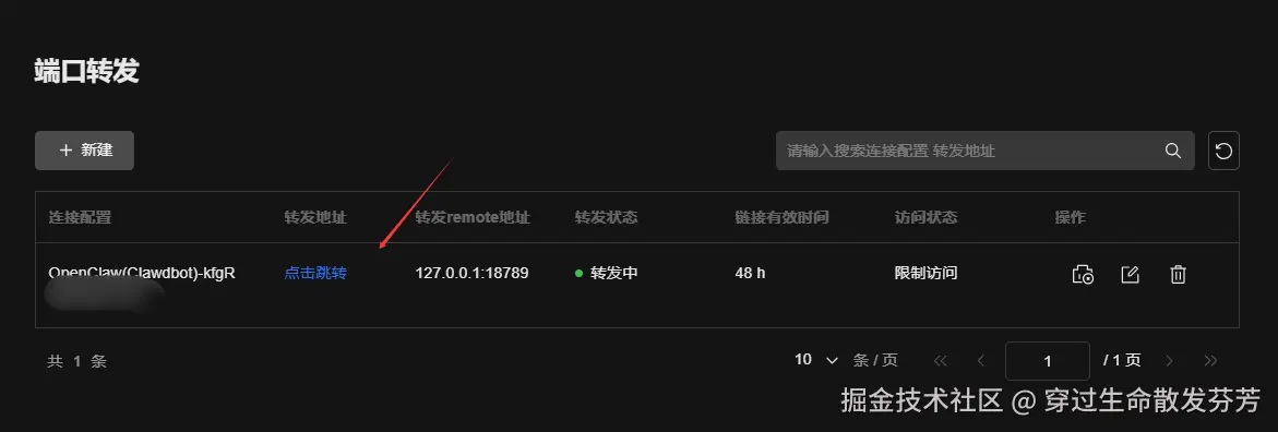 5、点击转发地址列的点击跳转按钮来来复制转发地址。