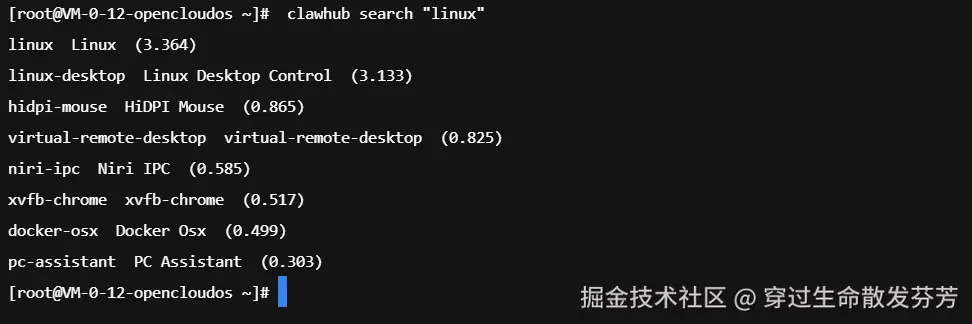 clawhub search "linux"