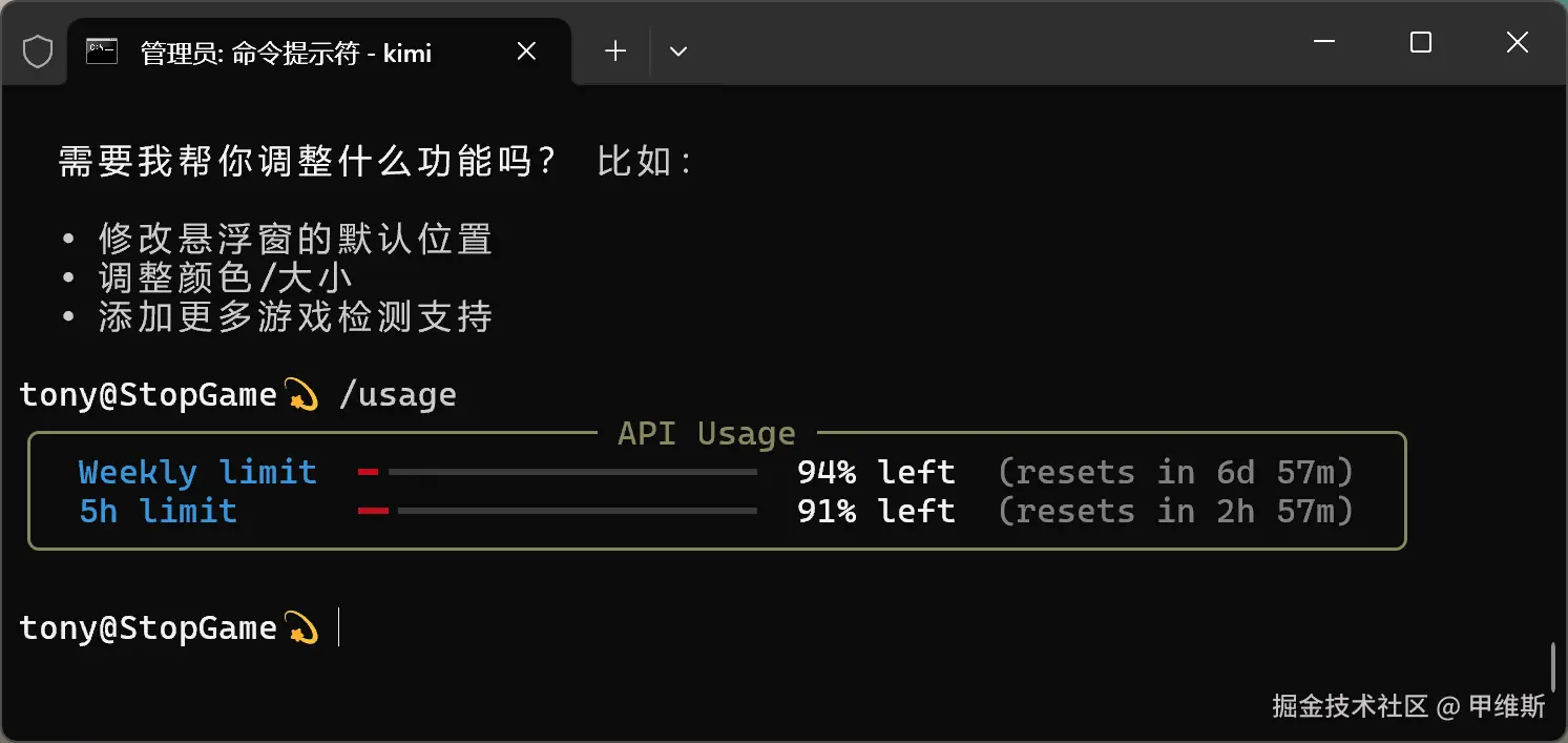 Kimi 的消耗情况: