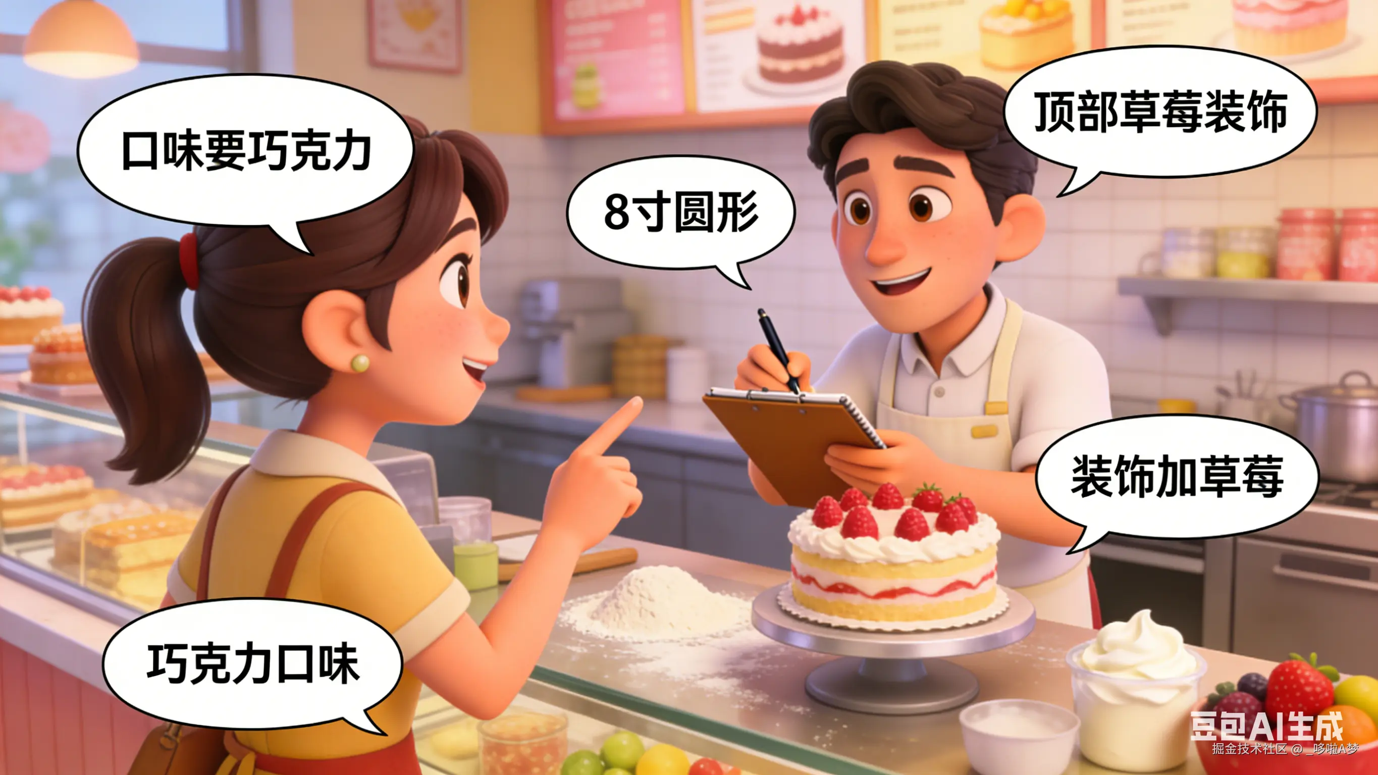 写实场景:就像你去定制蛋糕🎂 ------不用一次性告诉老板"我要一个草莓味、6寸、奶油裱花、带插件的蛋糕",可以分步来:先选口味,再选尺寸,再选装饰,最后确认,老板一步步给你做好。在Vibe Coding里,写复杂的表单提交、页面配置组件,用建造者模式,能避免传参太多导致的混乱,后期维护也能快速找到对应的"零件"。