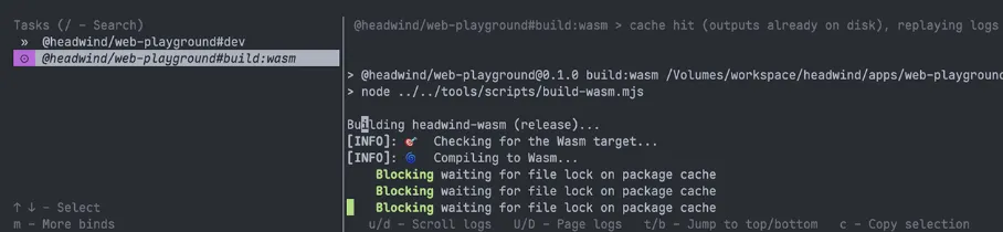 Turborepo还支持使用tui在一个终端内同时查看所有日志并与任务进行交互。