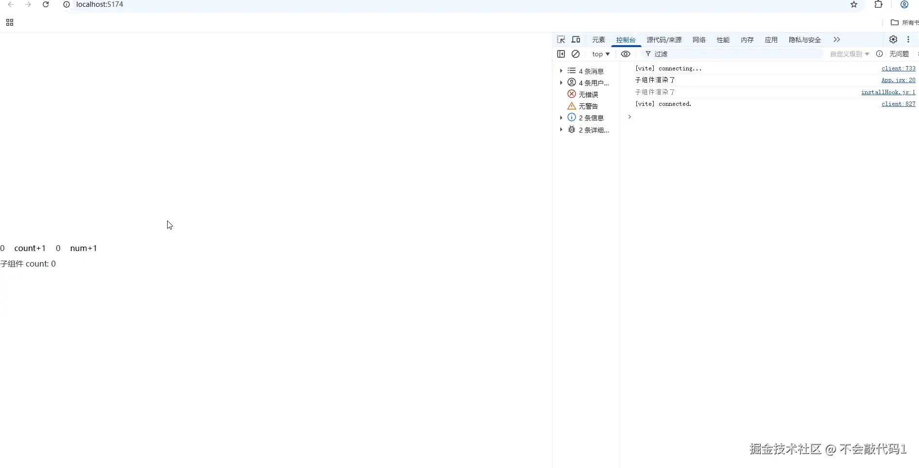 效果图,可以看到当我们点击nums组件时,我们的子组件依然会执行