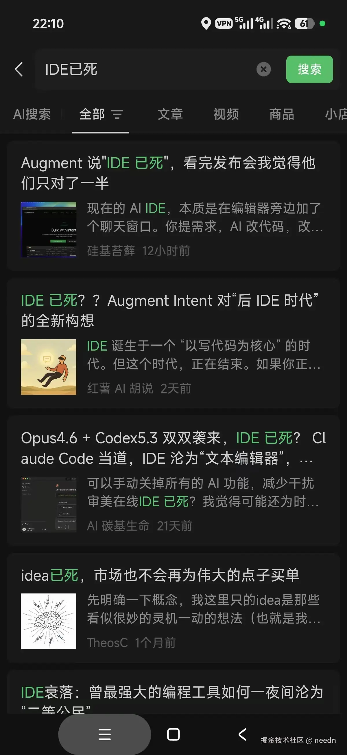 然后呢,再过不久就出现了IDE已死的论调。微信随便一搜,这类文章就不少。