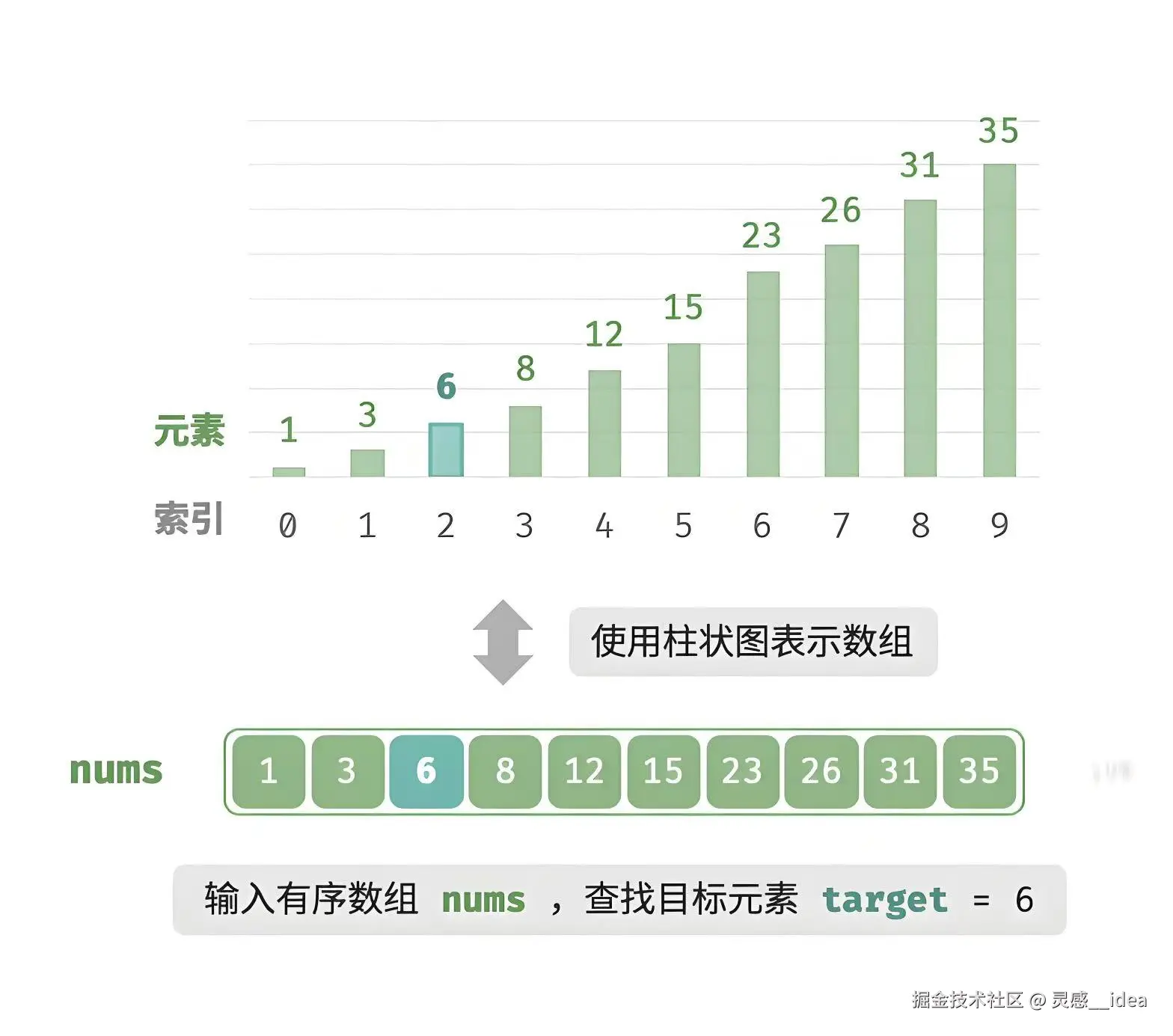 nums,从小到大排列,且不重复,查找并返回元素target在该数组中的索引,若数组不包含该元素,则返回 -1。