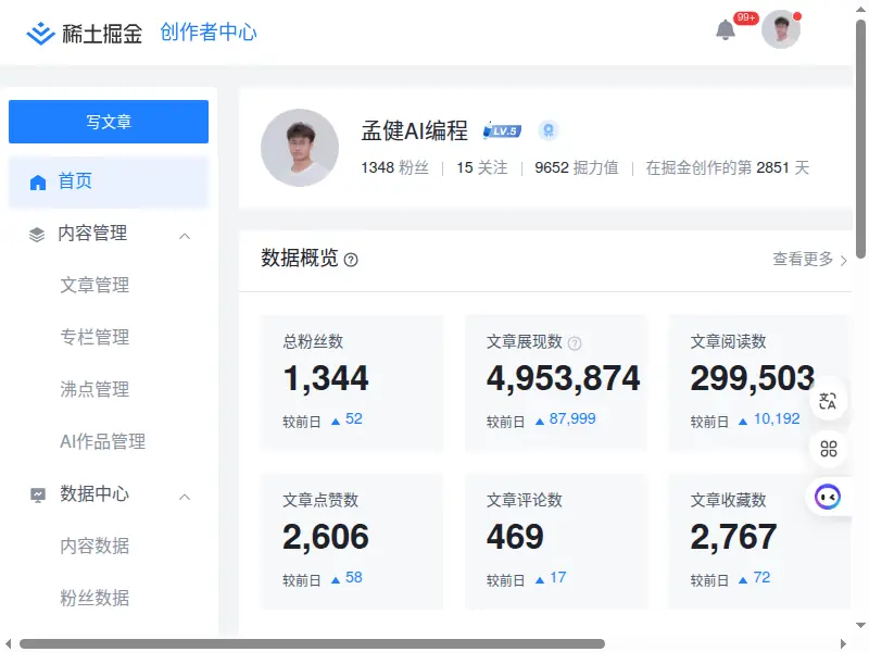 | 掘金粉丝 | 800 | 1,348 | +68% |