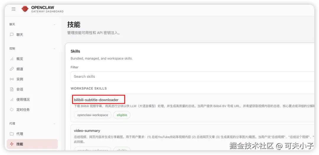 • 步骤三:重启 OpenClaw使新安装的 Skill 生效。
