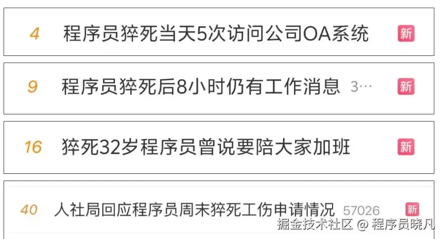 说实话,这种新闻我见得不算少。上一个上热榜的是广州32岁程序员周末晕倒后猝死,抢救期间曾被拉入工作群,死亡后还收到工作消息...