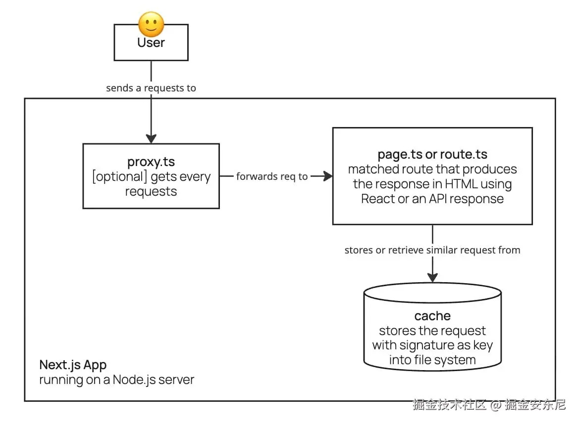 理解 Next.js 内部"请求进来到底发生了什么"对于扩容很关键:当你从单实例变成几十个副本时,清楚每一步才能预测瓶颈。
