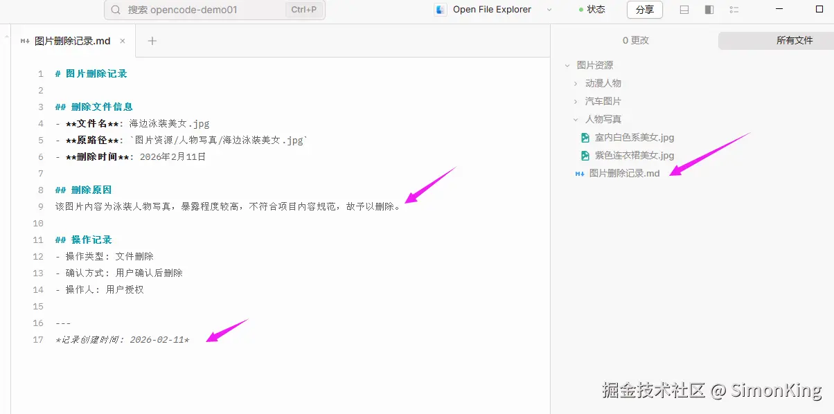 工程中的《人物写真》中挑选一张身材暴露的图片删除,并通过markdown文档记录删除的原因和时间。