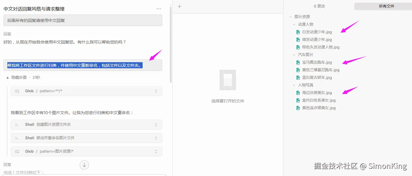 帮我将工作区文件进行归类,并使用中文重新命名,包括文件以及文件夹。