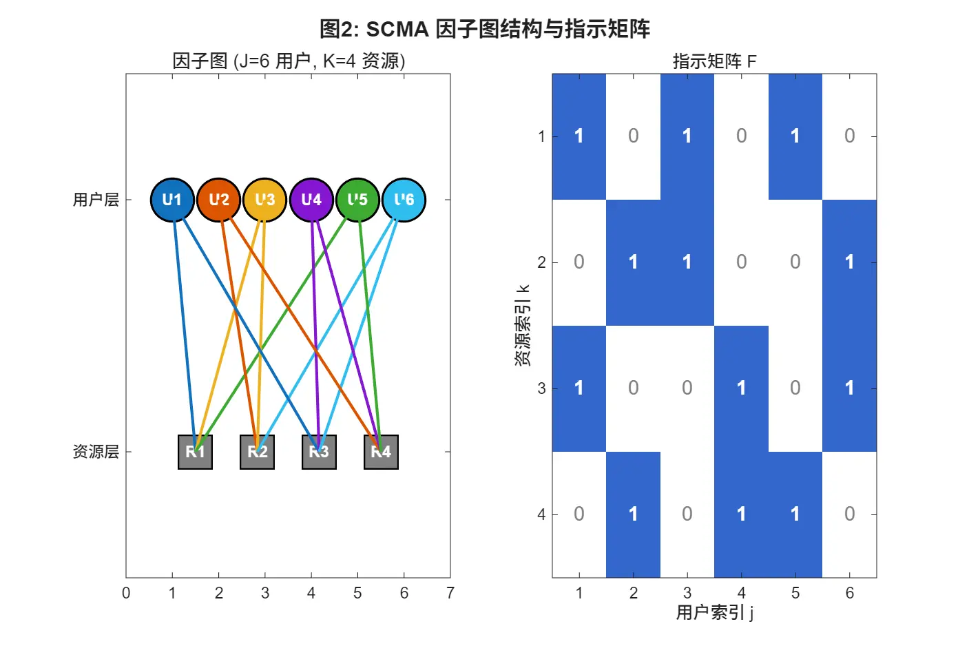 | SCMA 配置 | J=6, K=4, M_mod=4 |