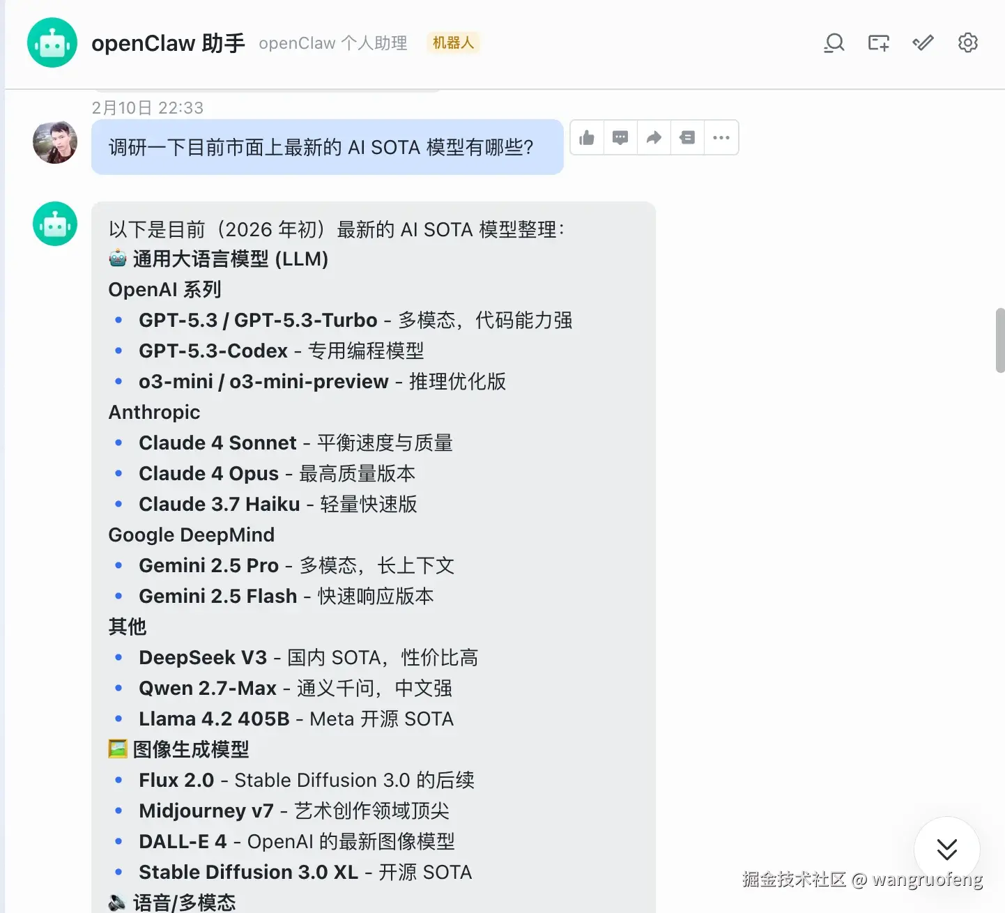 这个问题我开始以为很好解决。我让 OpenClaw 用 GLM 4.7 模型试,切换到 CLI 用 Claude Code + GLM 4.7 试,换成 MiniMax M2.5 还是不行😂。后来手动倒腾半天也没搞定,看来是新版本针对飞书和 Lark 的配置规则变了,旧配置因为缓存没删干净导致一直异常。