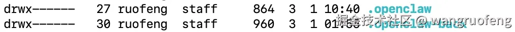 我安装完成后发现有两个文件, .openclaw 是你实际生效的目录