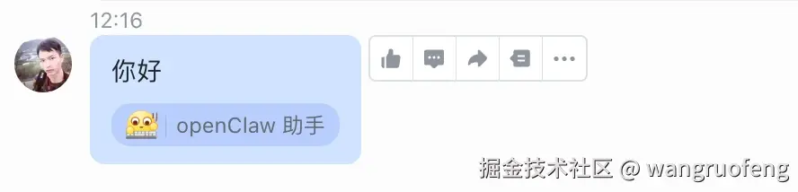 当我在飞书发消息时,Bot 终于回了一句: